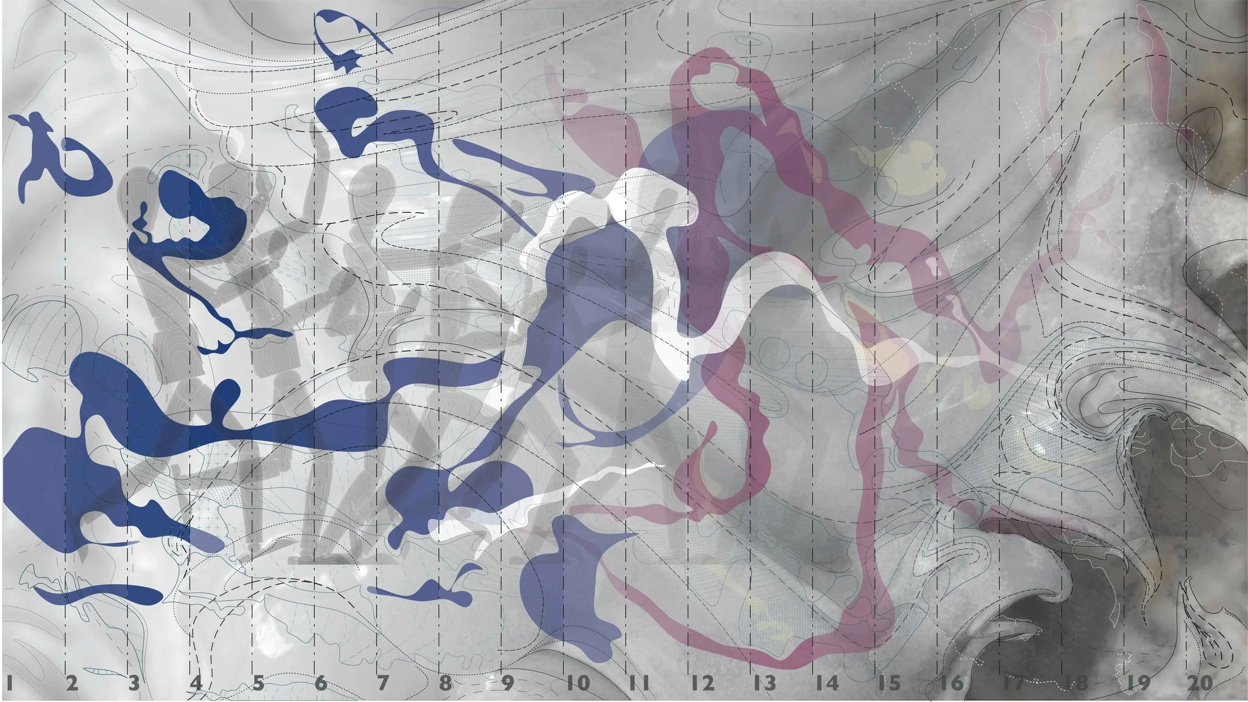 The master thesis concerned itself with the principles of growing architecture & constructed nature and aimed to display their notions on a more abstract level. Constructed nature describes an architecture, which is primarily planned out and based on ideas, thereby constructing another layer of our world’s sedimentation. The principle of growing architecture however defines itself more through opportunities and chances. It is an architecture, which integrates itself in moments of space. The two principles do not necessarily oppose each other, but rather coexist and sometimes even melt together.